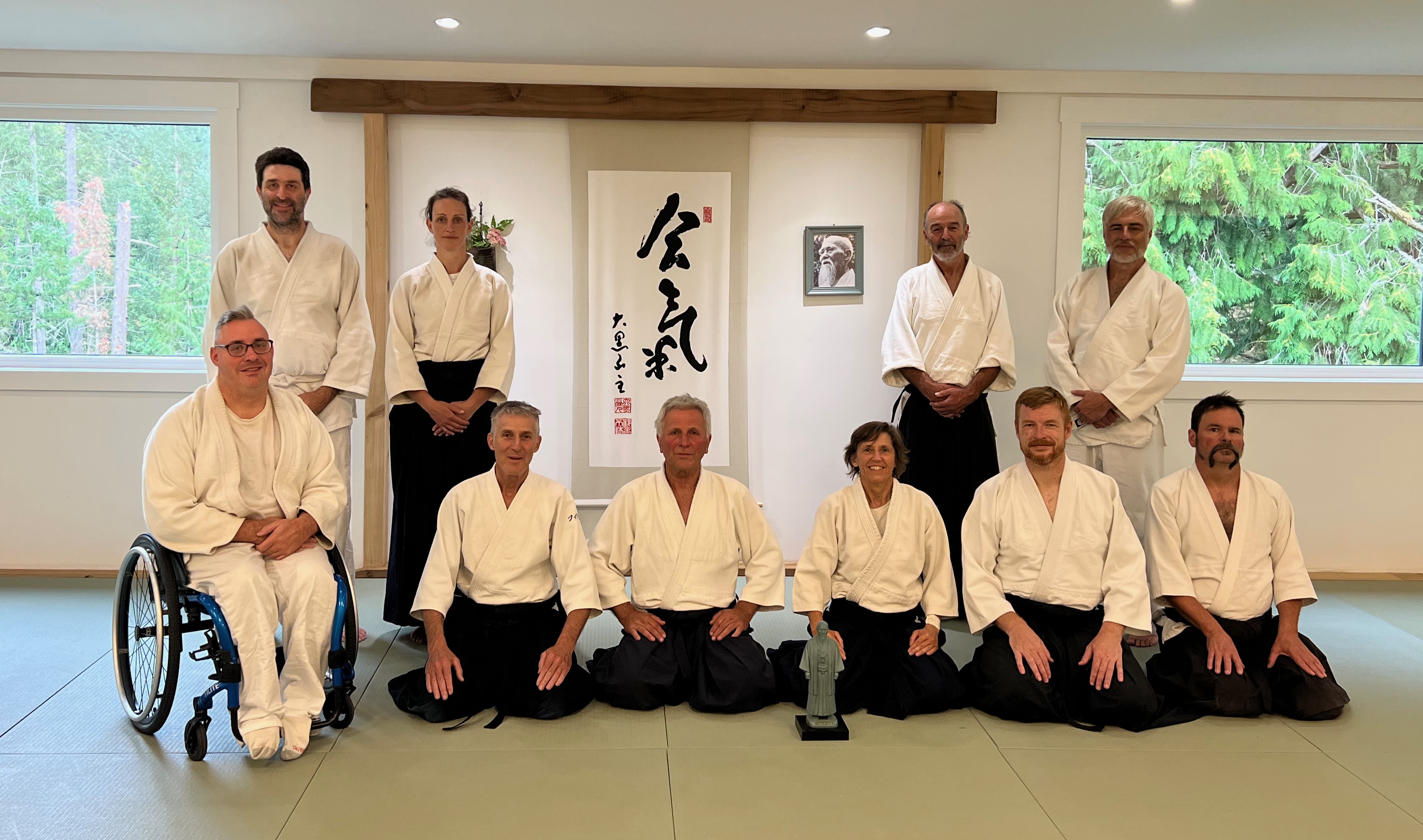 Once or twice a year, you will be given the opportunity to grade. You will progress through 5 levels of kyu or white belt grades and then black belt or shodan. We follow Aikikai world headquarters grading guidelines. Grading is an opportunity to challenge yourself to perform, and to test your skill and understanding. It can be nerve-wracking, in a good way, and an immensely satisfying experience. Anyway, your Aikido journey is your own.