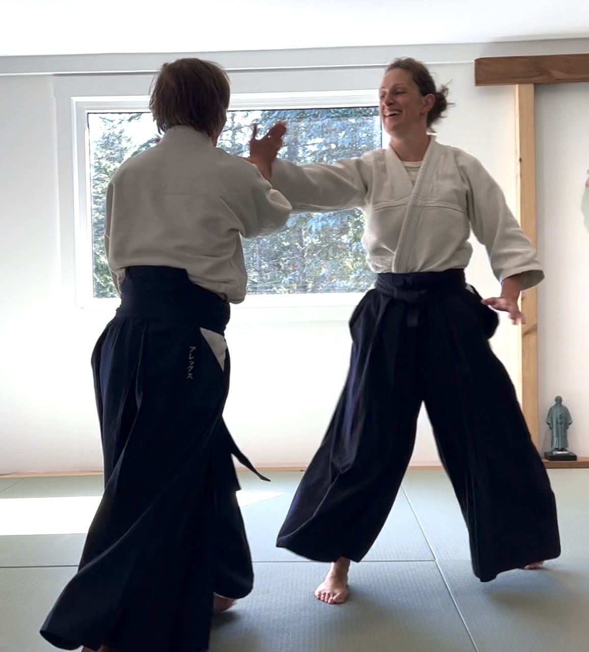 Once or twice a year, you will be given the opportunity to grade. You will progress through 5 levels of kyu or white belt grades and then black belt or shodan. We follow Aikikai world headquarters grading guidelines. Grading is an opportunity to challenge yourself to perform, and to test your skill and understanding. It can be nerve-wracking, in a good way, and an immensely satisfying experience. Anyway, your Aikido journey is your own.